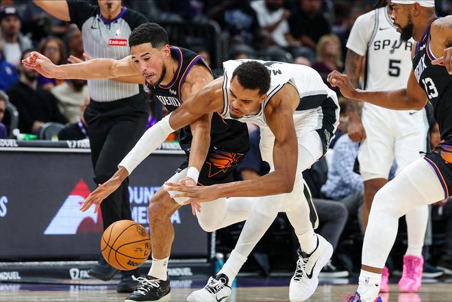 文班亚马14中4赛季最憋屈一战!布克28+13,太阳送马刺常规赛首败