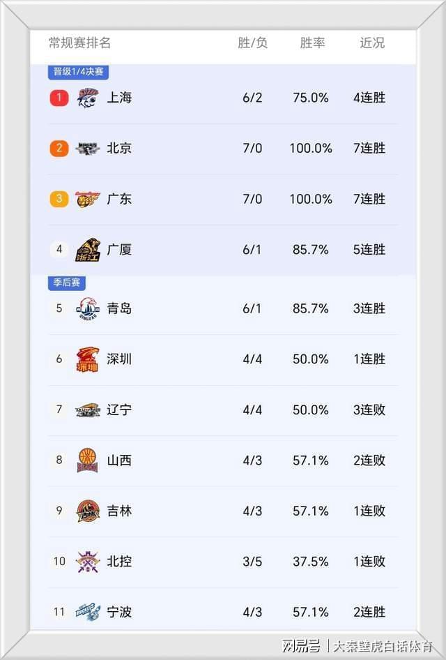 ③、北京队和广东队仍然是联盟迄今为止保持不败的球队,排名分列二三。